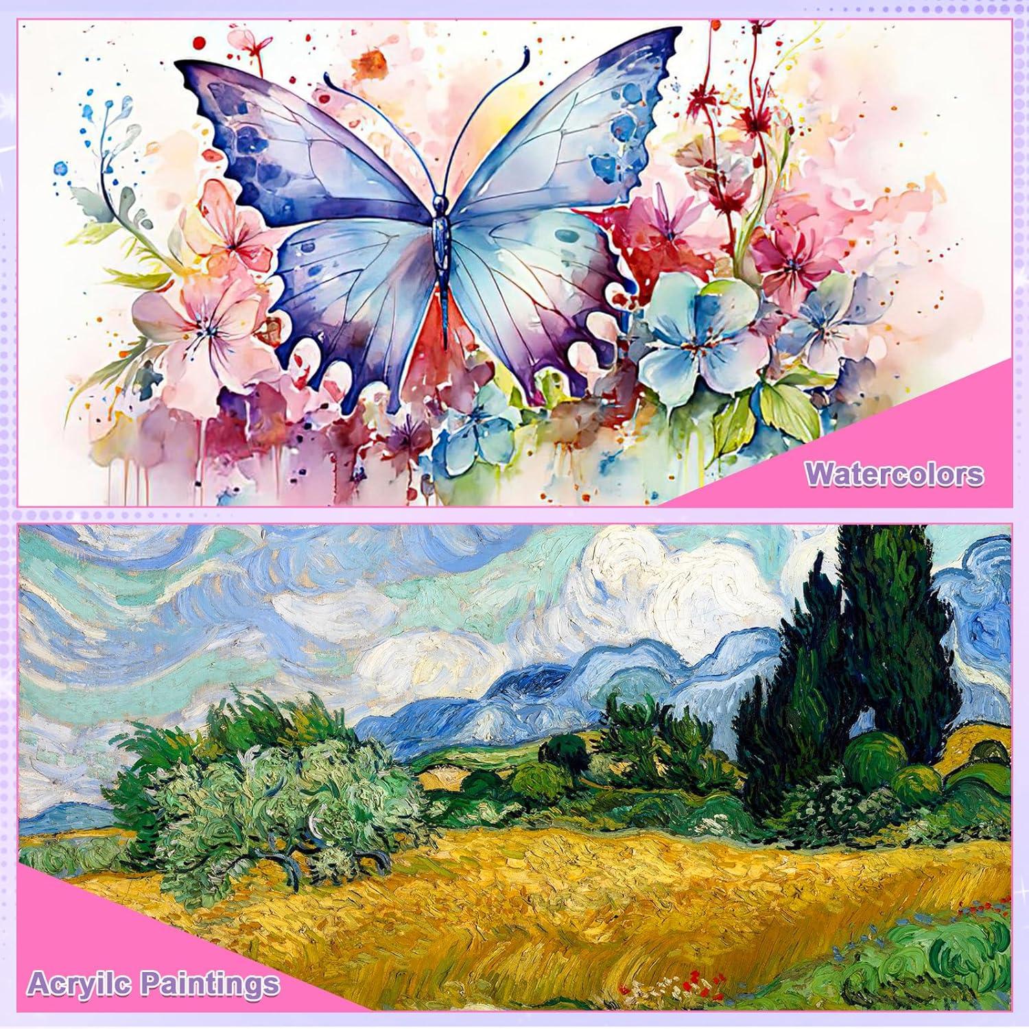 【 High Quality Paints】: Our art painting supplies kit provides 2 types of paints (Acrylic paint & Watercolor paint) at the same time! They conforms to ASTM D-4236 certificate,safe and friendly.Our paint adopts a unique formula and high-quality pigments, which can bring maximum brightness and color clarity.
